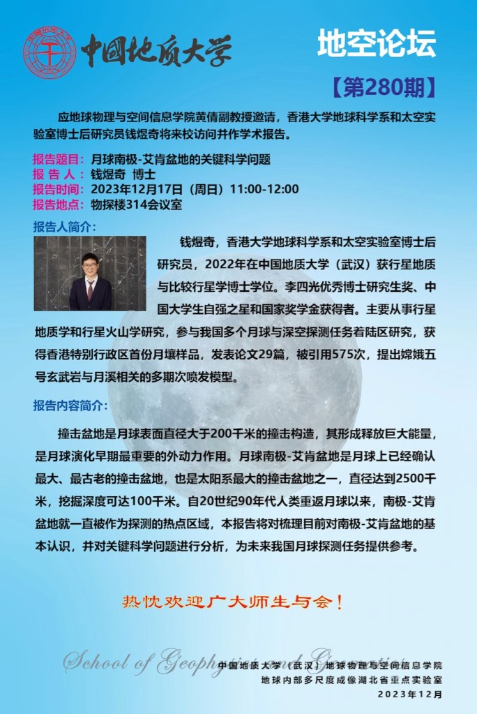 Key scientific question of the South Pole-Aitken Basin on the Moon Posted byYuqi QianDecember 20, 2023Posted inMoon Share this: Click to share on X (Opens in new window) X Click to share on Facebook (Opens in new window) Facebook Like Loading... Related